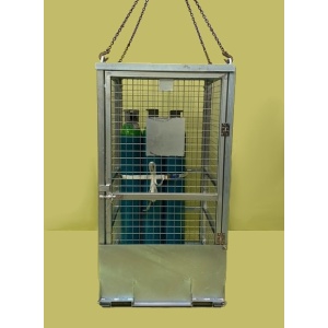 This unit has 4 lifting eyes giving you the option of using this gas cage in conjunction with a crane. the lifting eyes are made from 20mm diametre solid rod tubes, this rod is heavy duty and can hold upto 187.5kg per lifting eye, giving the total cranable capacity of 750kg or 8 standard 230mm gas bottles.