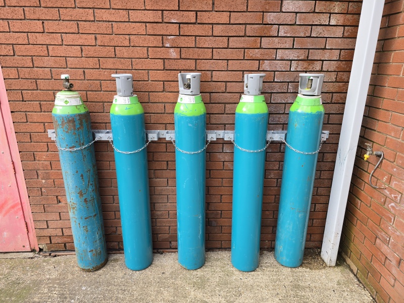 Gas Cylinder Brackets For 5 Gas Bottles Features These are wall brackets for five cylinders of compressed gas. Constructed of galvanized sheet metal for corrosion resistance they are designed to safely secure the cylinders to the wall. It is important that there is no comprimise to safety. It is extremely important that compressed gas cylinders are stable during storage to avoid the dangers of cylinders falling to the ground, with this product the bottles are fastened with a chain to restrict movement. This gas cylinder bracket can store upto 5 cylinders. If wanting multiple units please call us for a discount. Delivery is FREE to mainland UK, excluding Northern Ireland, Scottish Highlands and Islands. Please call for a delivery price to these regions. Prices do not include VAT. Products not in stock have a 4 week lead time. Cylinder Brackets ProductCapacityDimensions Z/LEDA/PBO5Z 5 x 250mm Cylinder 2130x60x115 mm