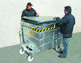 The tipping skips can easily be moved by hand thanks to the four large diameter and high capacity wheels, two fixed and two swivel.
